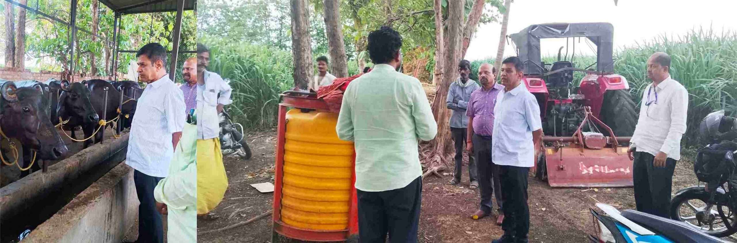 After the meeting he visited the dairy farmer Praveen Kumar. He has 18 buffalo, 2 cow, 11 calves and 6 acres of green crop to feed them. He used to sell 140 litres of milk to KMF, but due to summer season, the sale dropped to 80 litres. The Executive gave him information about cross-breeds, food, etc. and instructed authorities to provide him a book containing all information regarding dairy farming.