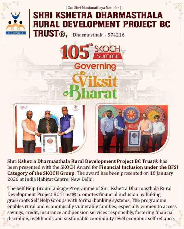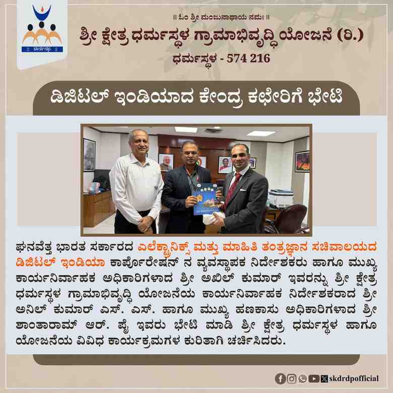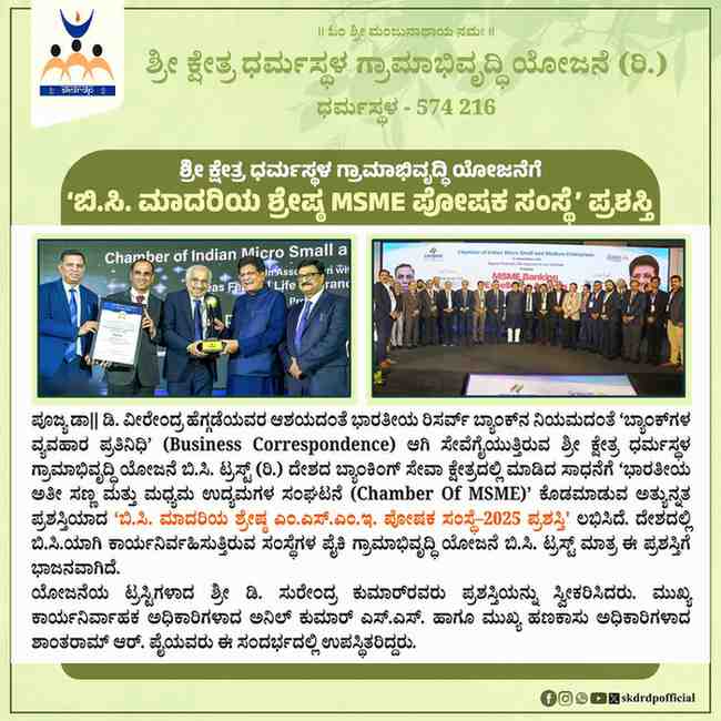 Posted On: 18-09-2025-Shri Anil Kumar S.S. the Chief Executive Director of SKDRDP has been awarded the Karnataka Idol 2025 by the Zee Kannada News Channel.”